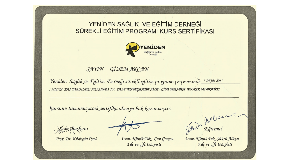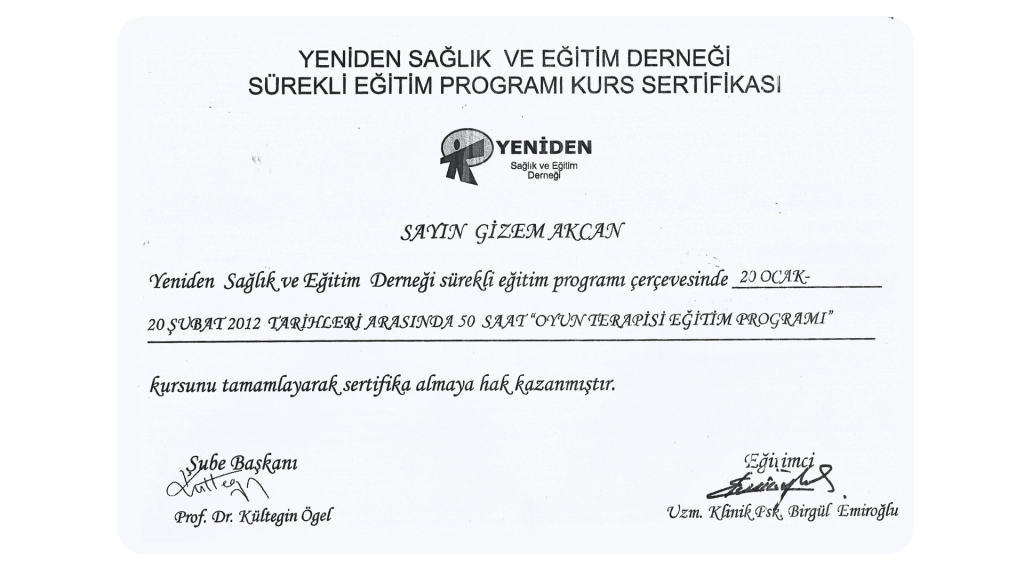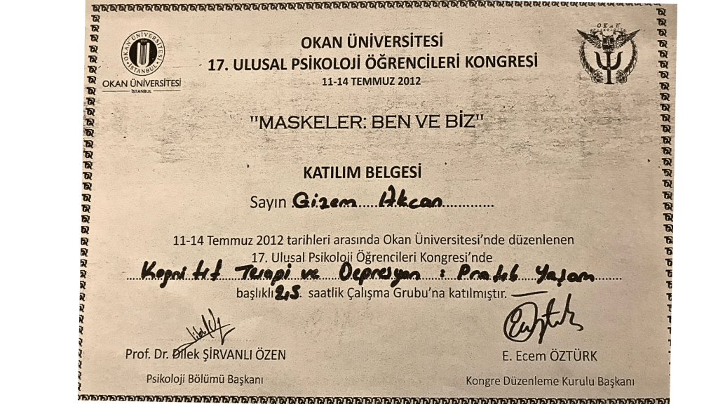 Uzun yıllar Prof.Dr. İlkay Kasatura Psikoterapi Merkezi, New Life Danışmanlık ve Psikolium Danışmanlık ve Koçluk Merkezi’nde terapist olarak çalıştım.
